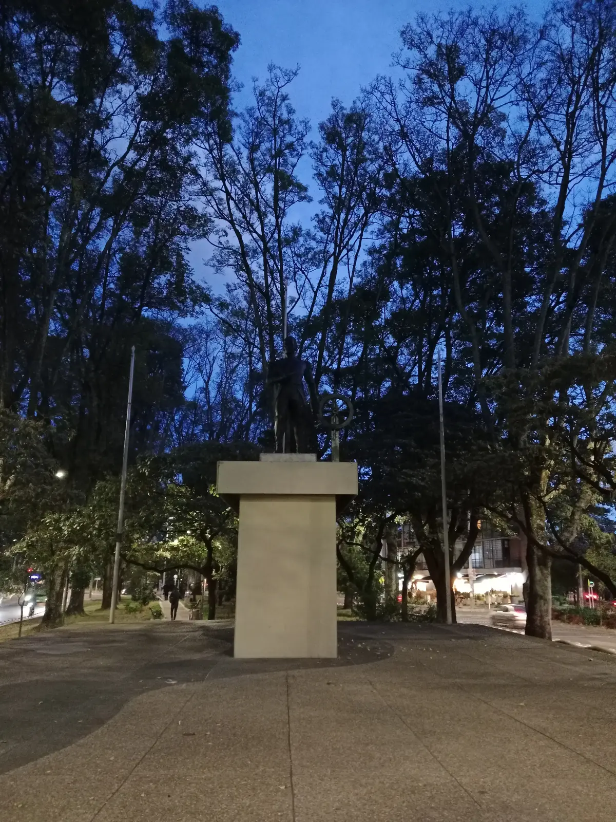 Parque Guernika al frente de la Clinica Palermo Voy de Jean con saco gris y estaré ubicado en la réplica de la pintura de Pablo Picasso de GUERNIKA