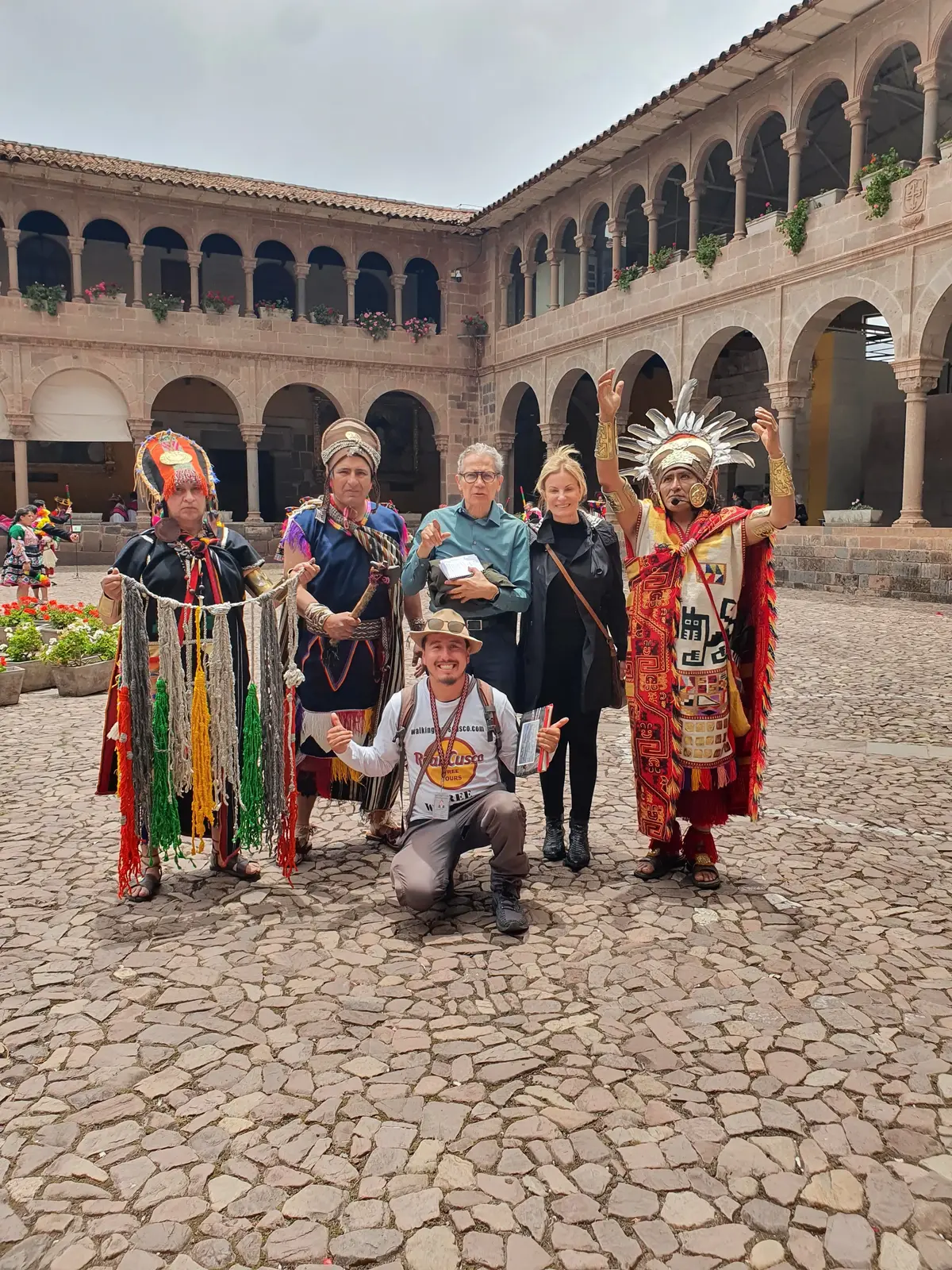 The tour begins at the water fountain in the Plaza de Armas of Cusco. We are the white shirt team, look for us by the REAL CUSCO logo free tours