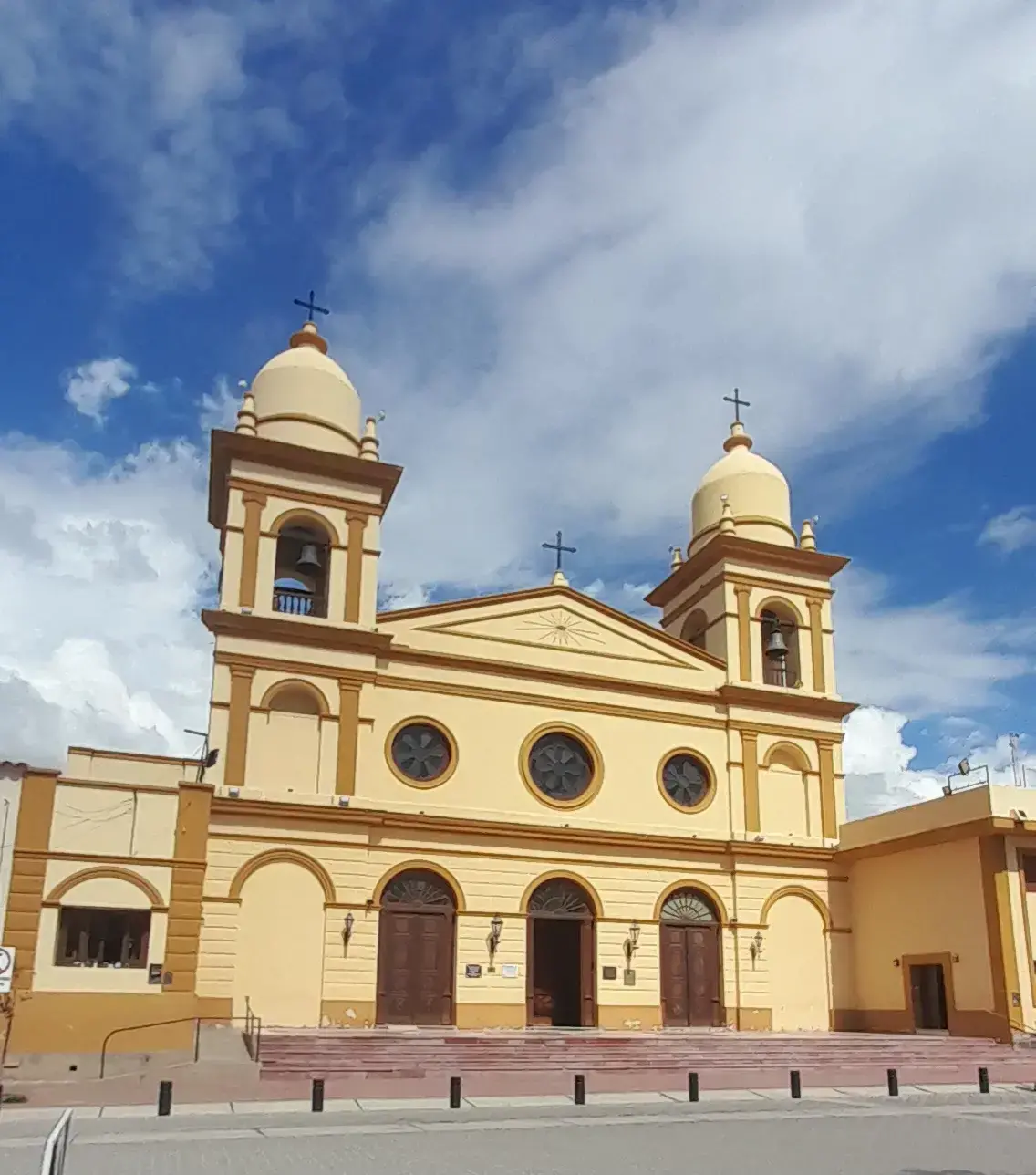 It begins in Plazoleta Güemes , at the northern entrance of the town, until reaching the Main Square , around which you can see the Church , the Municipal Building , statue of the Harvester , and the Crafts Fair .