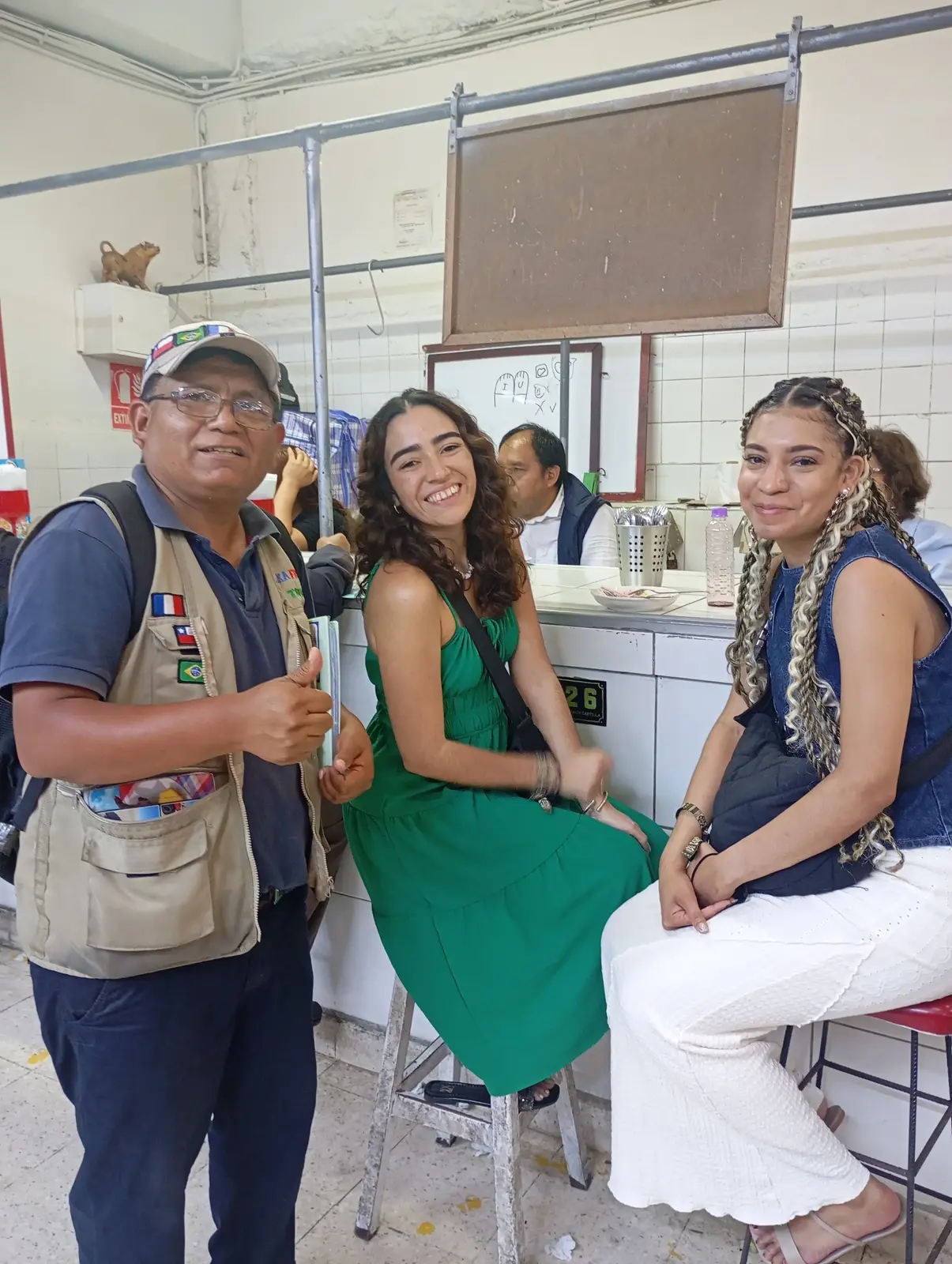 I will be at Jiron de la Union 621 in front of La Merced Church near McDonald's in the historic center of Lima, wearing a vest with the Inka France Tours logo, and I wear white glasses and a black hat with flags of different countries.