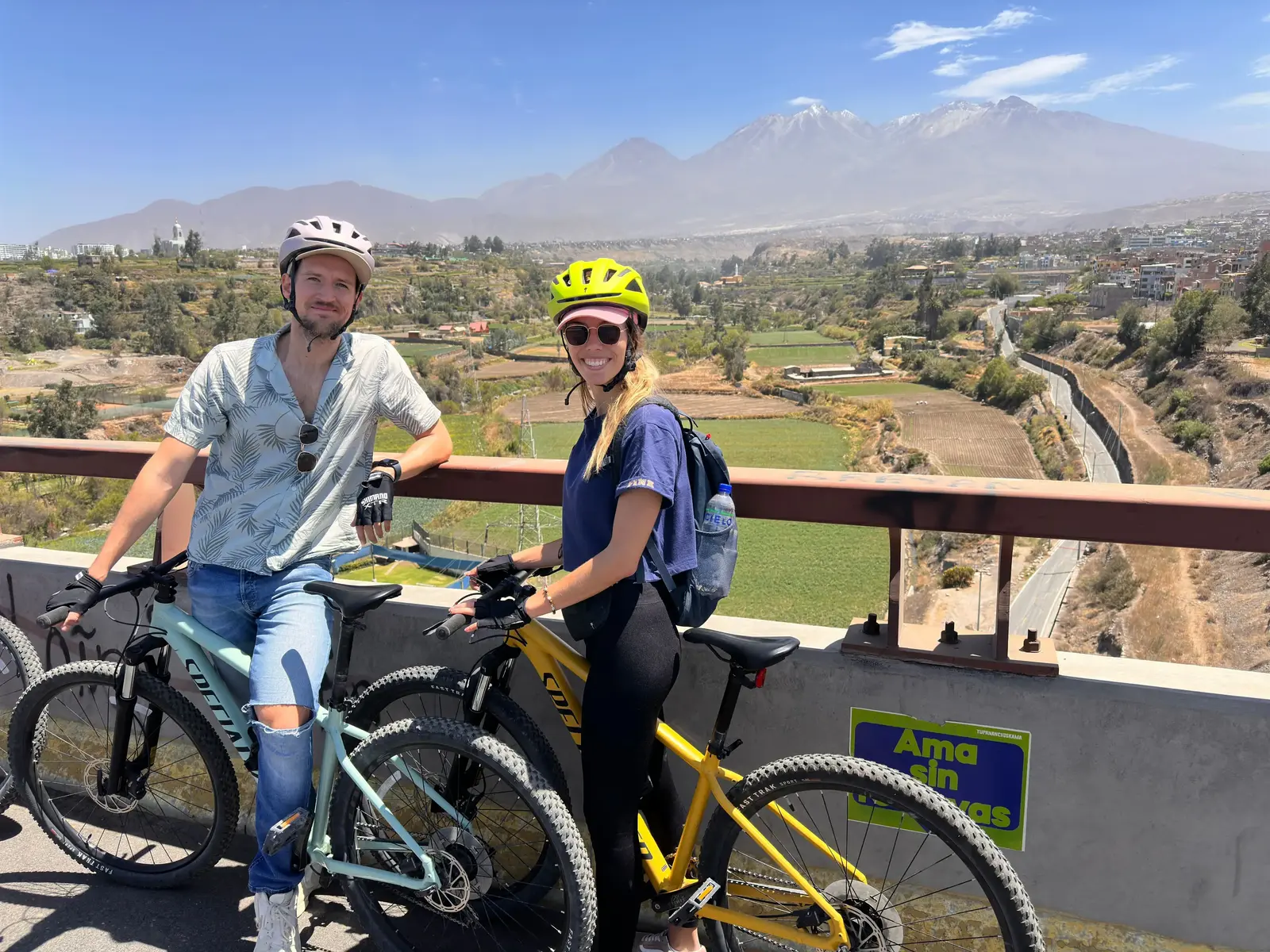 We'll visit Arequipa's historic center by bike and learn about its history and culture in a unique way. We'll be able to take photos of the volcanoes from viewpoints and traditional neighborhoods. We'll also visit the Chilina Valley and pass through the agricultural region.