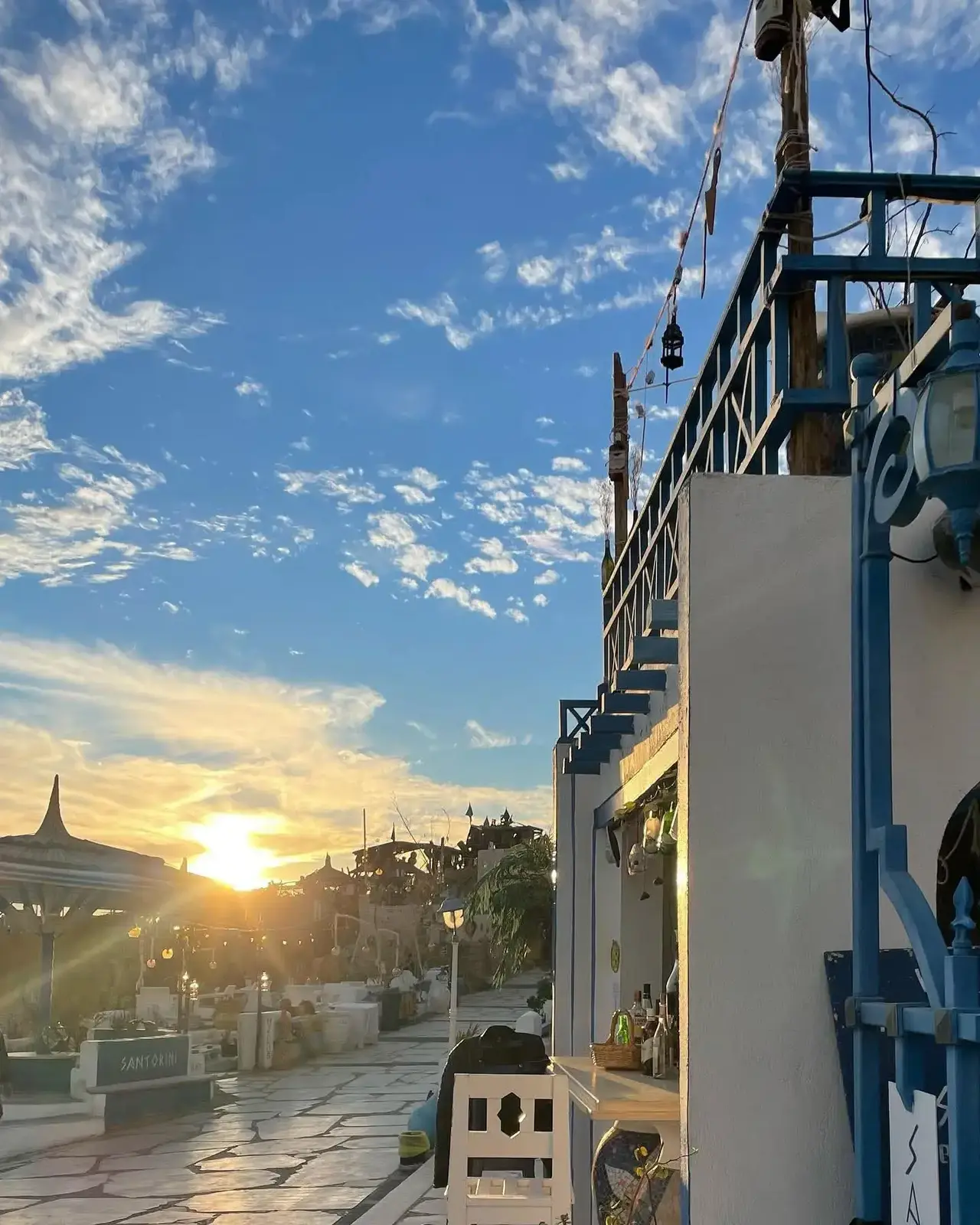 Join me for a relaxing evening in Sharm El Sheikh where we’ll discover two of the city’s most magical spots. First, we’ll head to Farsha Café, a legendary cliffside lounge with bohemian vibes, colorful lights, and one of the best sunset views in Egypt. Then we’ll continue to Santorini Sharm, a dreamy Greek-style spot with white walls, blue accents, and a cozy atmosphere perfect for photos and good conversation.