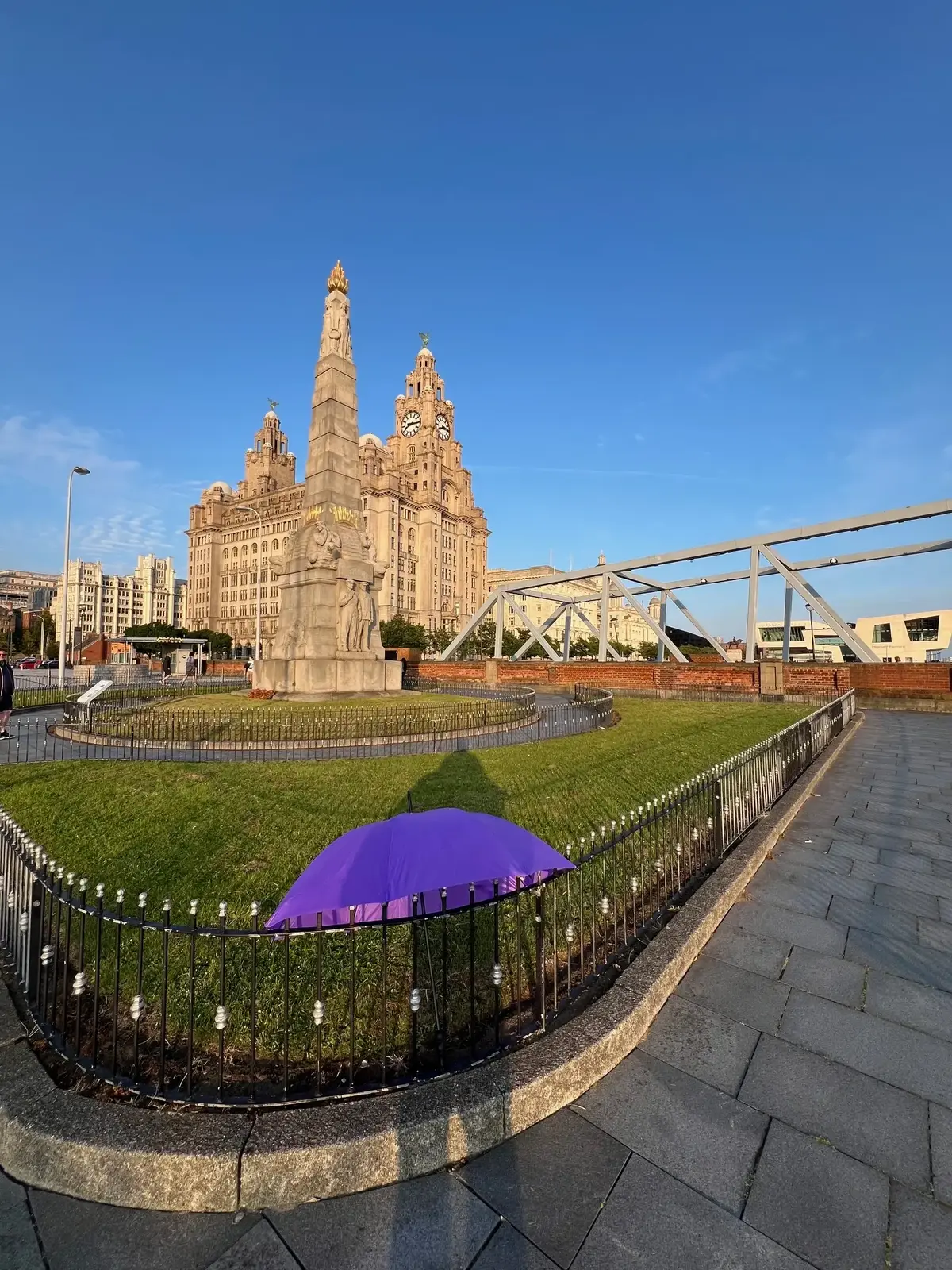 We meet next to the memorial to the Marine Engine Room Heroes, facing Liverpool Cruise Port. I will be carrying a purple umbrella.